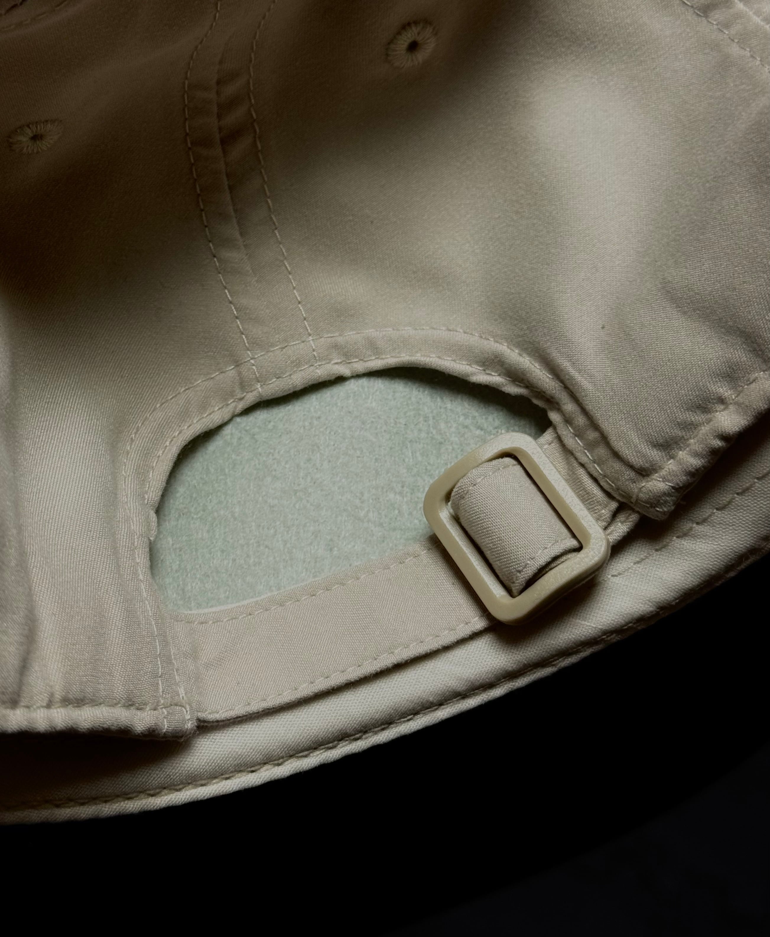 ポリエステルを起毛させたピーチスキンキャップ。